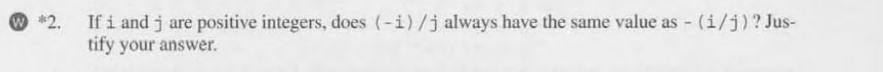 (-i)/j,-(i/j)계산 결과는 항상 동일하다. (계산 전 -1 곱하는 것과 계산 결과에 -1 곱하는 것은 동일한 결과를 출력한다.)