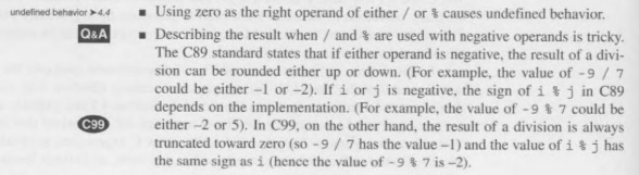 C89 표현식에서는 / % 연산 시 피연산자(operand)에 음수 값이 할당될 경우 올림 혹은 내림이 일어날 수 있다.
