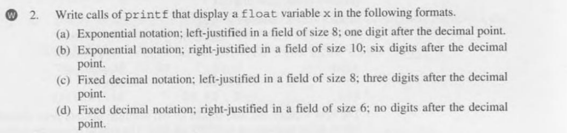 - (b) ” 3.02530e+01” → 12자리 문자열, 소숫점 아래 숫자는 5개, 지수 형태로 구성
