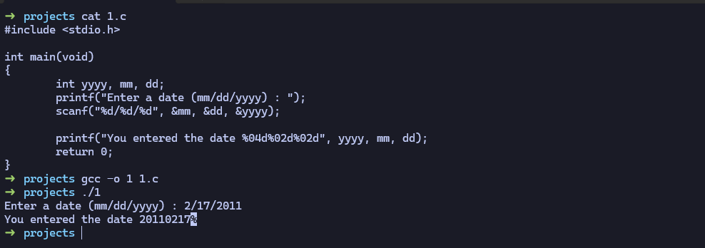 %d/%d → %d / %d로 수정하여 입력 값 형식에 공백을 추가해줬고, - (2) 값을 저장할 때, 변수의 메모리 주소를 전달하여 값을 올바르게 할당하도록 수정했다.