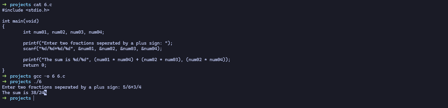 printf("The sum is %d/%d\n", result_num, result_denom);