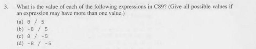 C89 표현식에서는 / % 연산 시 피연산자(operand)에 음수 값이 할당될 경우 올림 혹은 내림이 일어날 수 있다.