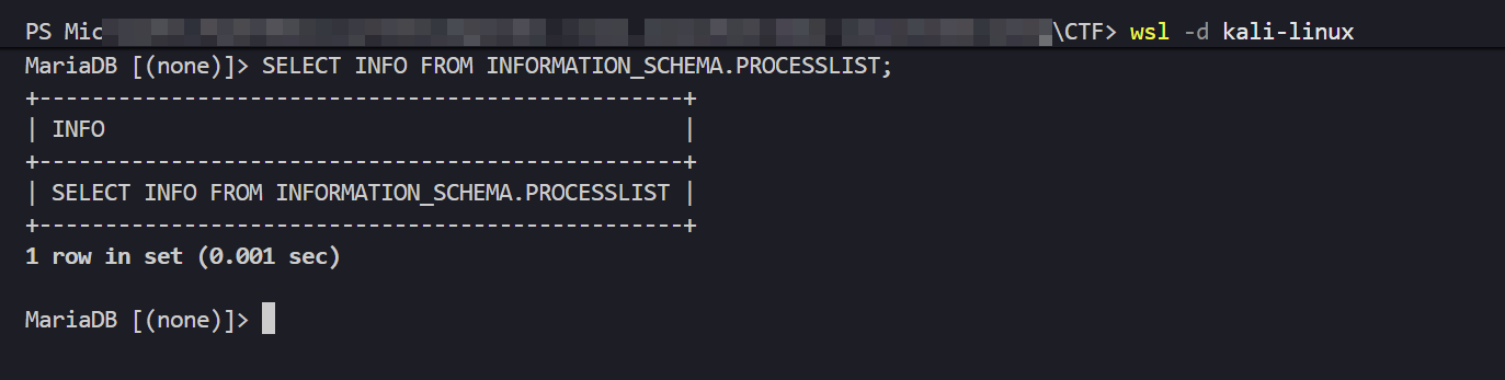 이 문제에서는 INFORMATION_SCHEMA.PROCESSLIST 를 사용할 수 있었기 때문에 수월하게 문제 풀이가 가능했습니다.