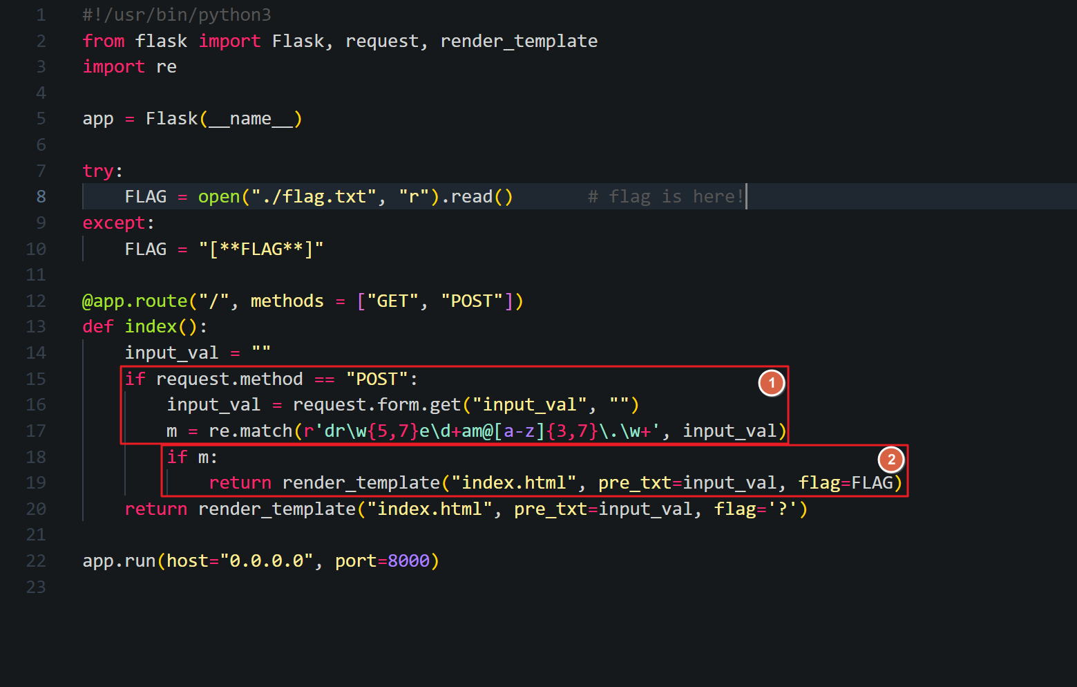 input_val파라미터 값을 가져와 정규식으로 처리하고 있습니다.re.match(r'dr\w{5,7}e\d+am@[a-z]{3,7}\.\w+', input_val)- dr + 문자 5