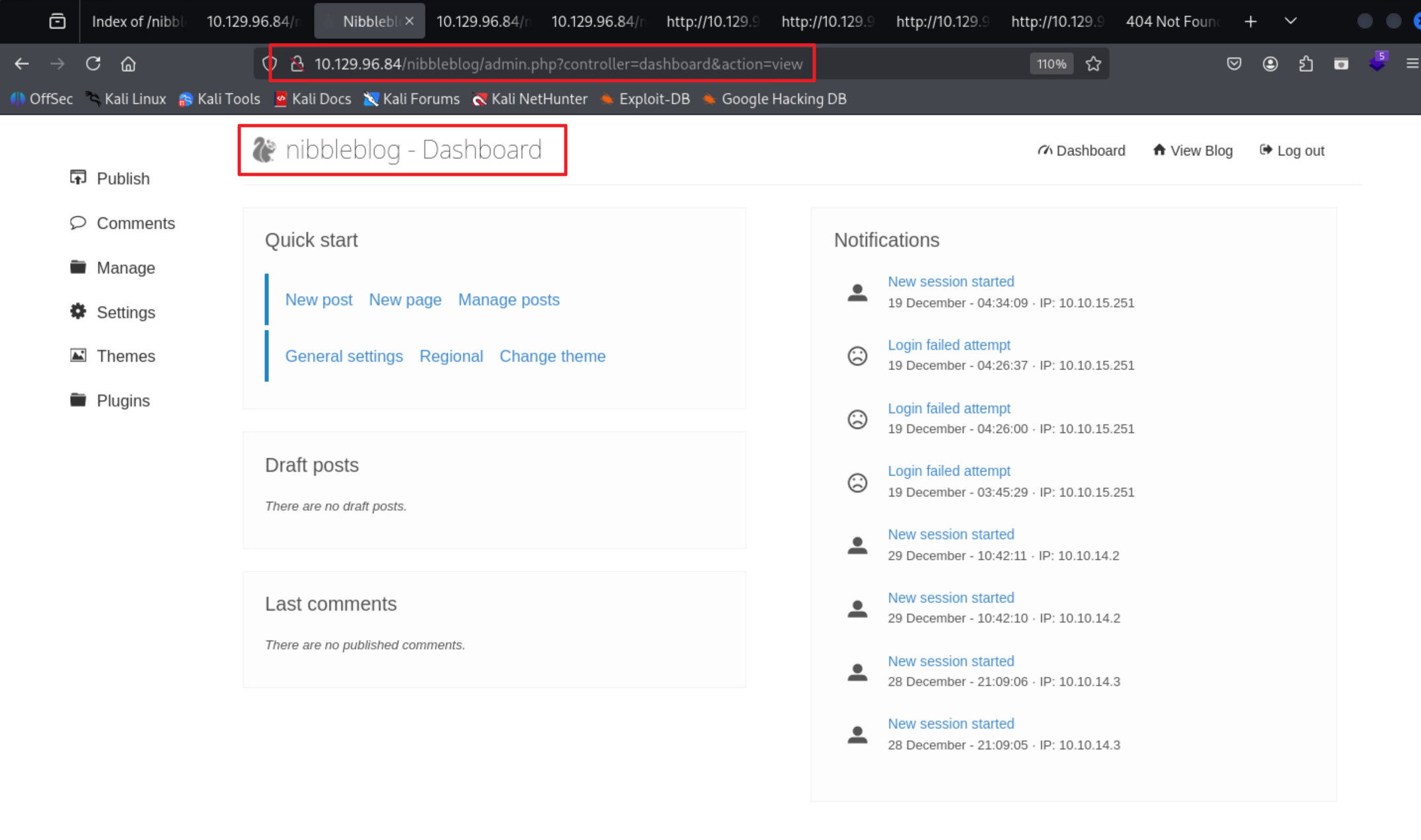 /plugins (Status: 301 ) [Size: 325] [-- > http://10.129.96.84/nibbleblog/plugins/]