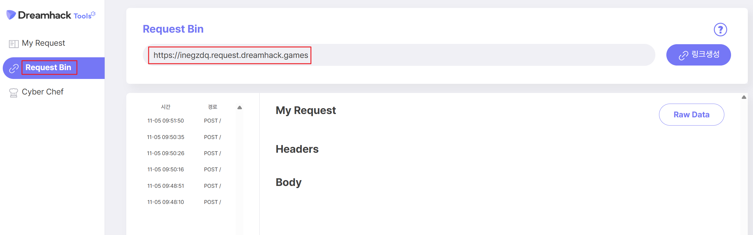 - 드림핵에서는 접속한 브라우저의 요청/응답 정보를 확인할 수 있는 Request Bin 사이트를 제공하고 있다.