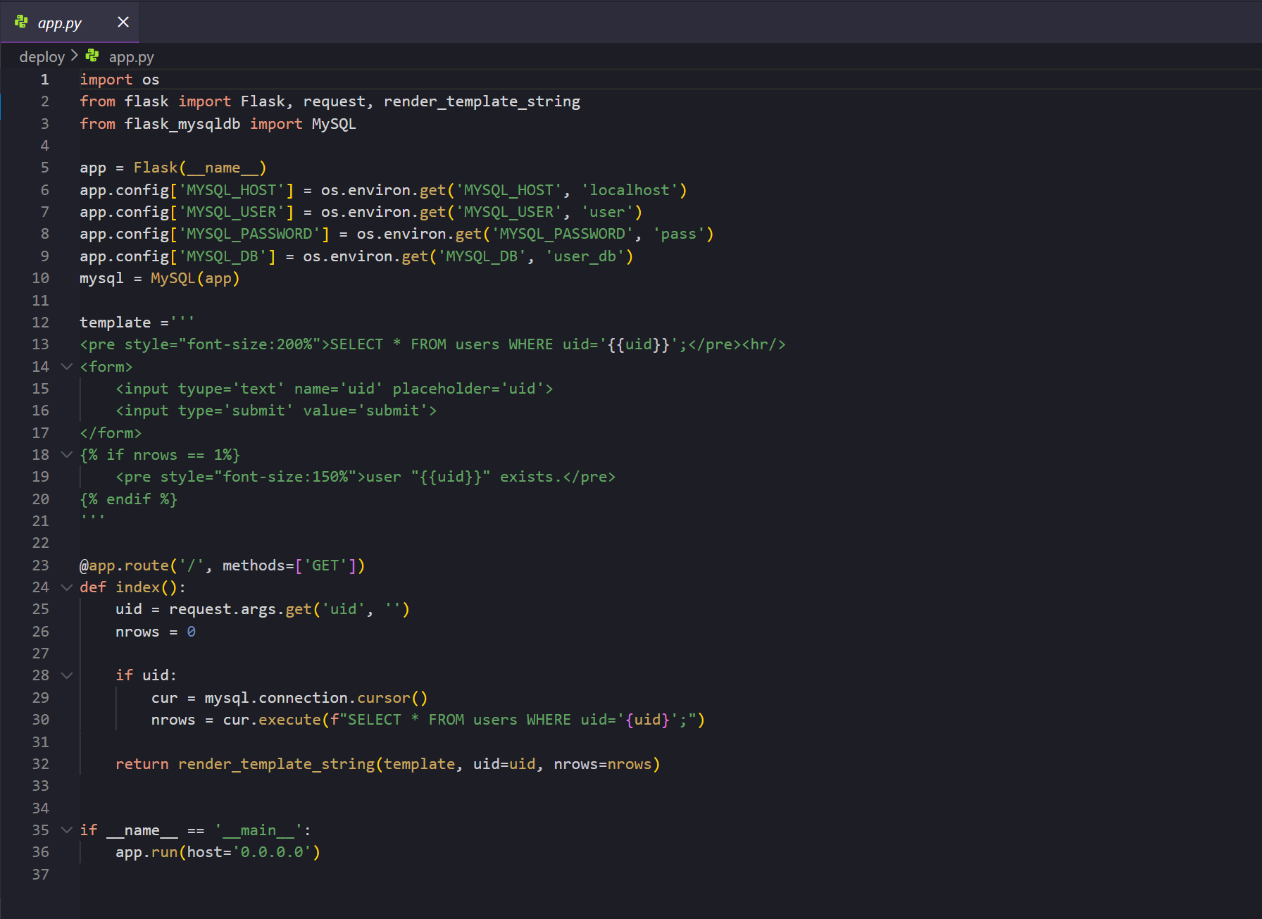 - “app.py” 파일은 / 경로로 접근했을 때 서버와의 상호작용을 담당하는 소스다.