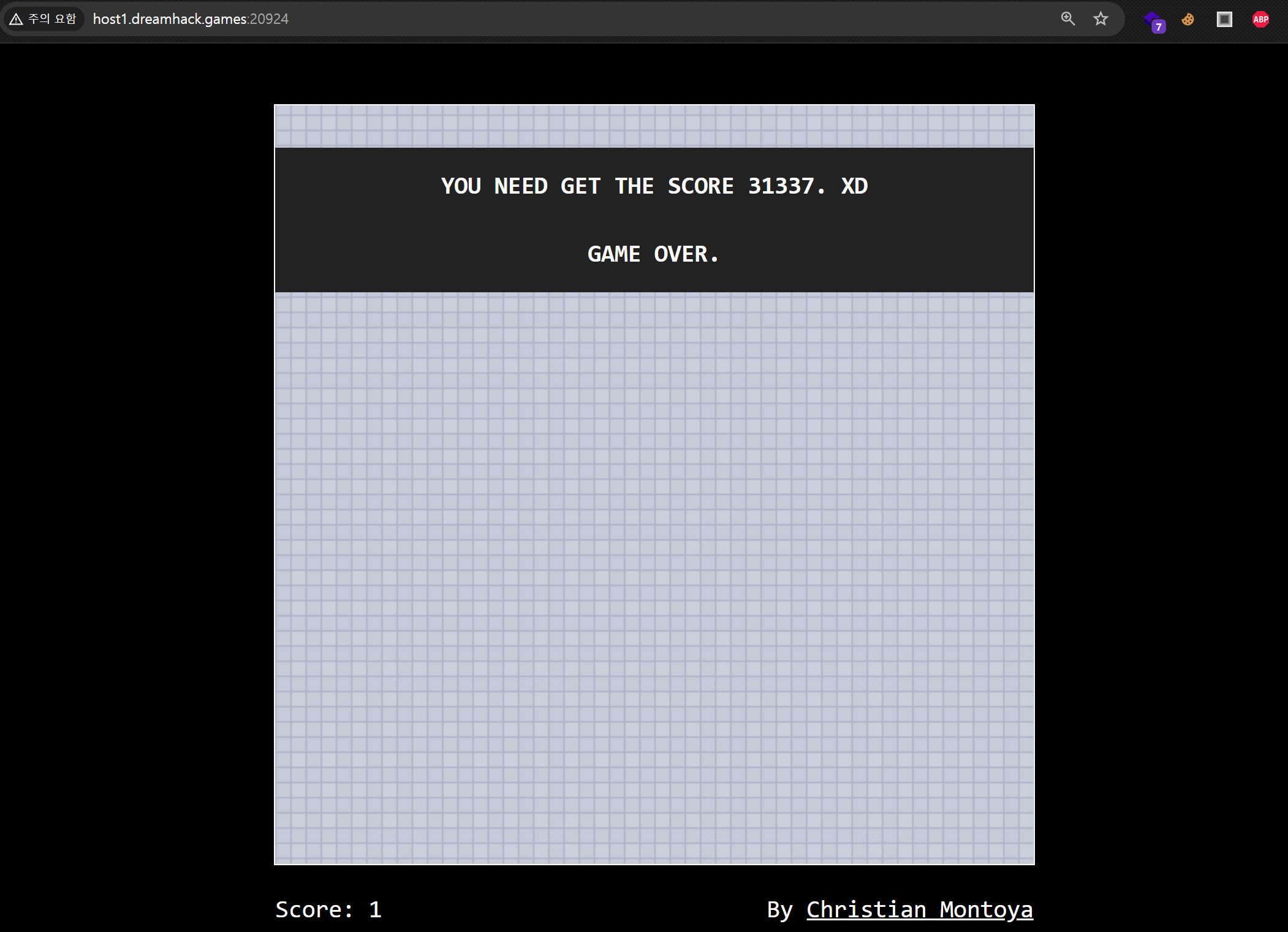 - 양쪽의 벽돌을 피하는 게임인데 31337 점수를 모아야 플래그 확인이 가능해 보인다.