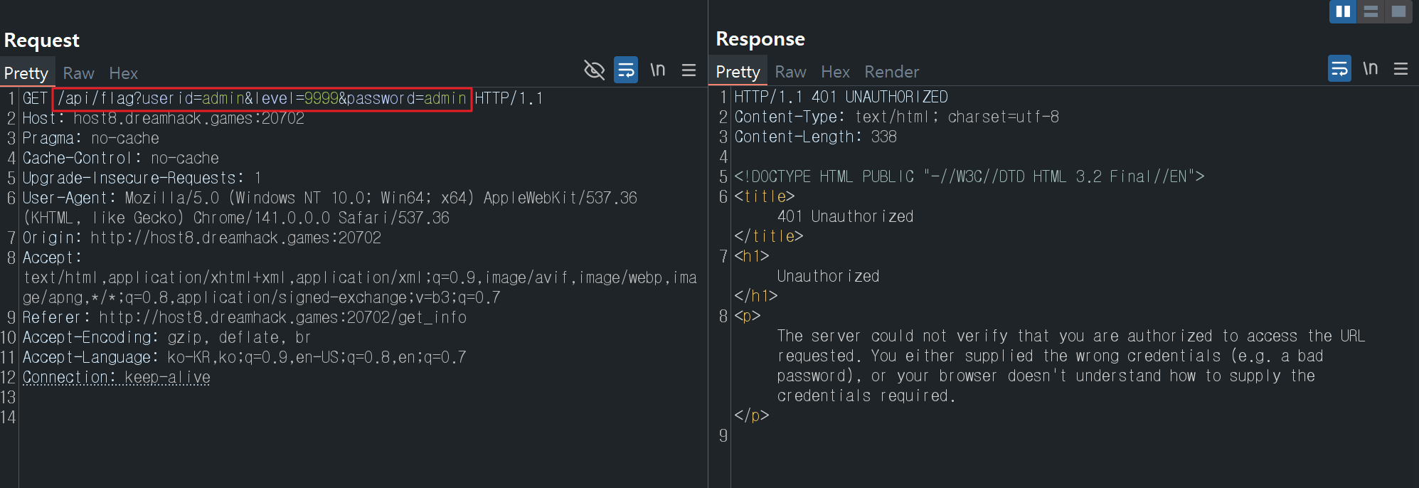 get_infoPOST 요청으로 획득한 정보를 활용해 보아도 401 비인가 응답이 떨어졌습니다.