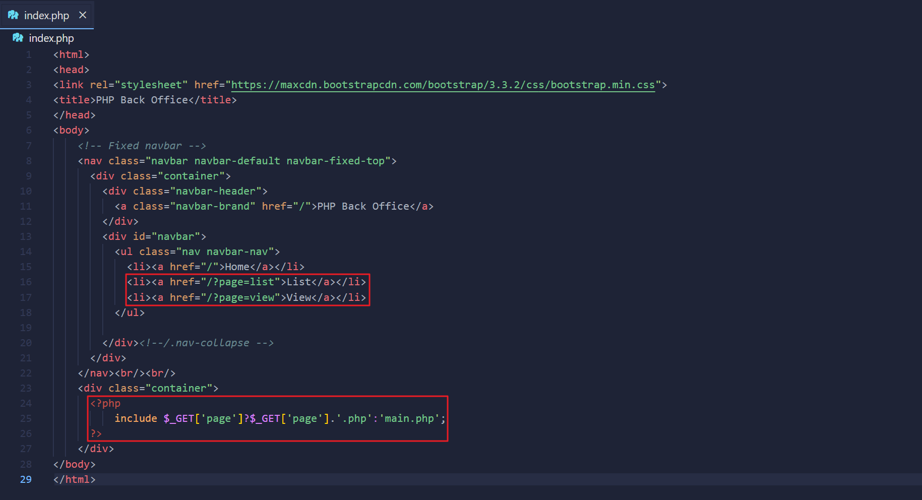 index.php파일을 살펴보면,{사용자 입력 값}.php파일 자원을 반환해주는 로직을 확인할 수 있다.- include 에 의해