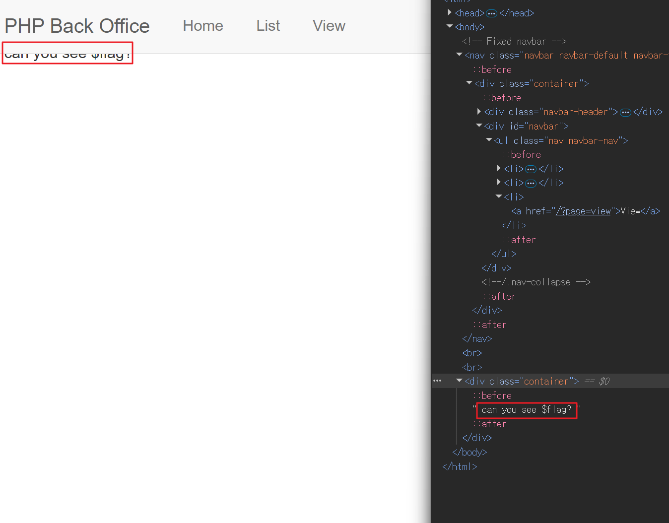 /index.php?page=../uploads/flag를 입력하면 “Can you see $flag?” 문자열이 출력된다.- 문자열이 반환되고 있으므로