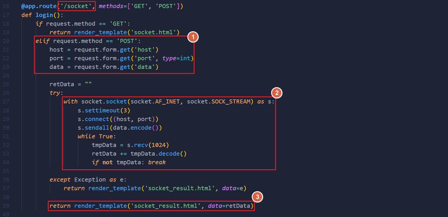 - /socket 경로로 POST 요청이 들어오면, 파라미터 값으로 전달된 “호스트:포트”로 “데이터”를 전송한다.
