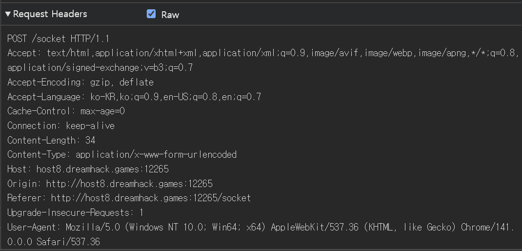 - /socket 경로로 돌아와 아래 데이터를 삽입한 후 전송을 시도한다.