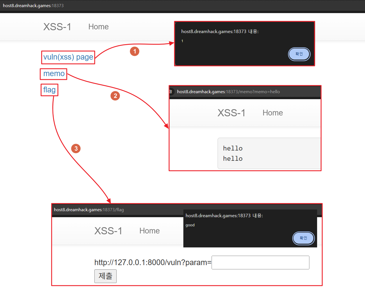- 1번 링크(/vuln) - Reflected XSS 공격에 취약
