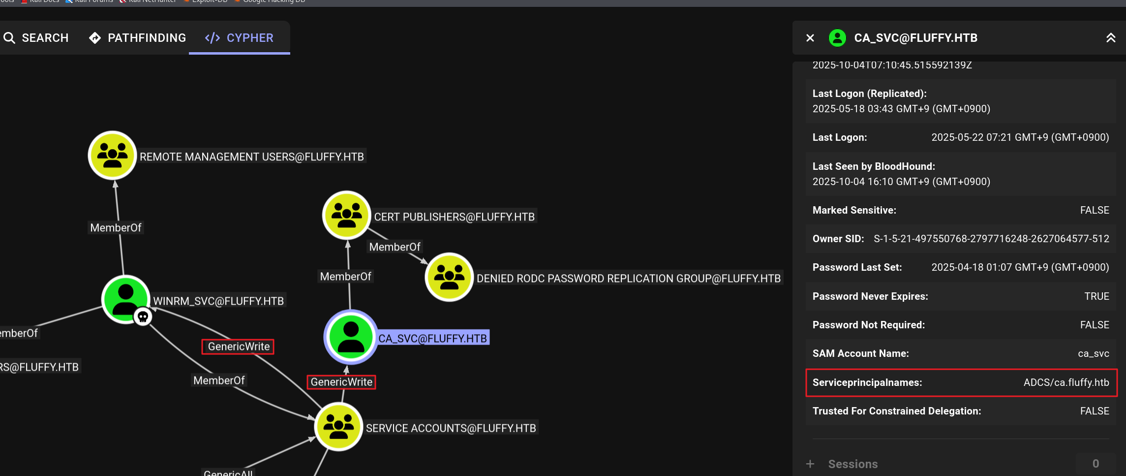 servicePrincipalName : ADCS/ca.fluffy.htb