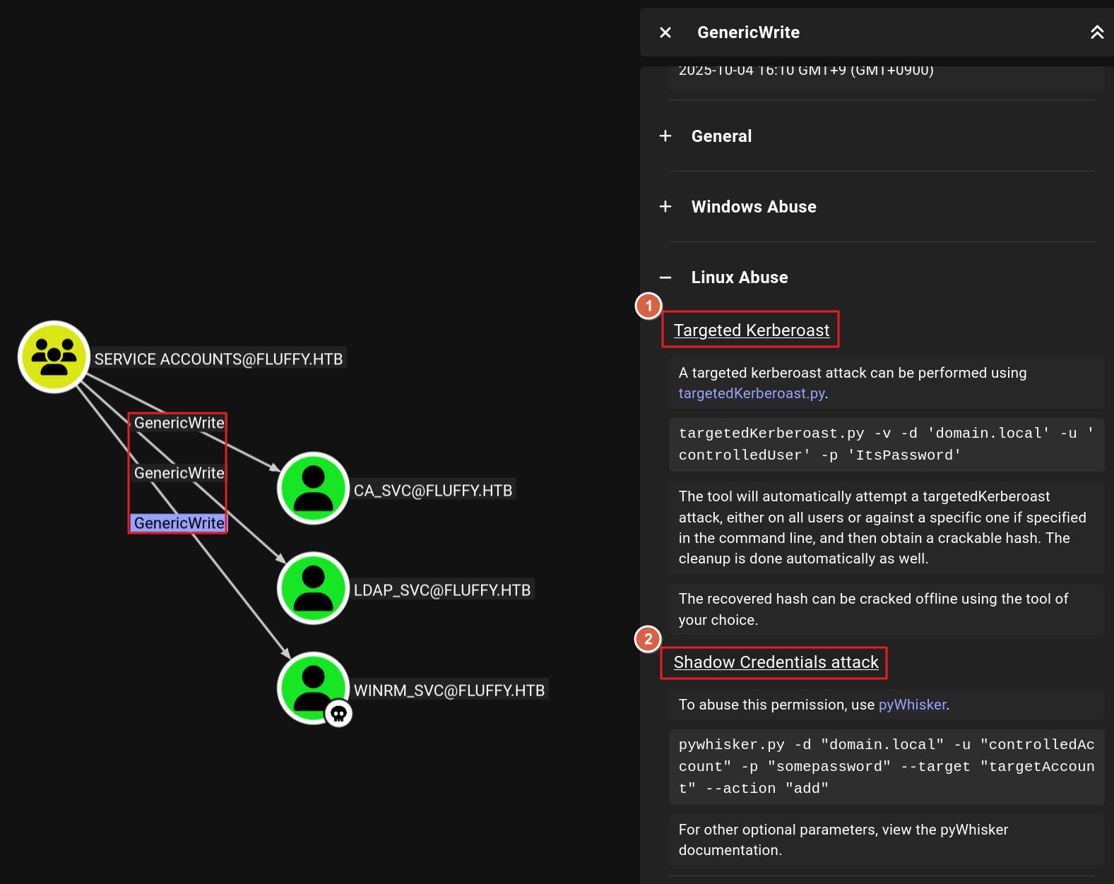 [*] Target user found: CN=certificate authority service,CN=Users,DC=fluffy,DC=htb