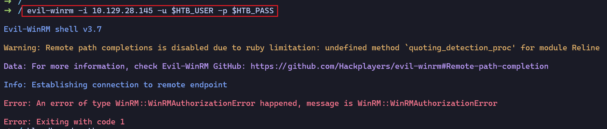 ➜ / nxc smb 10.129.28.145 -u $HTB_USER -p $HTB_PASS --shares