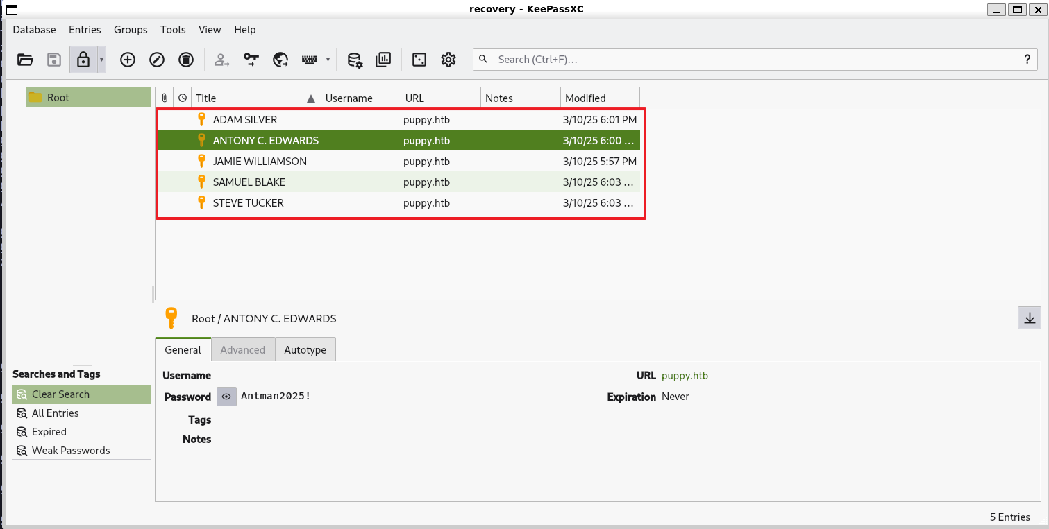 TargetName : Domain:target=PUPPY.HTB