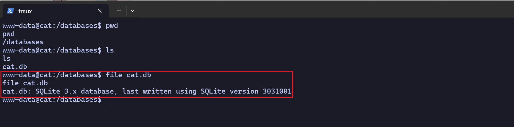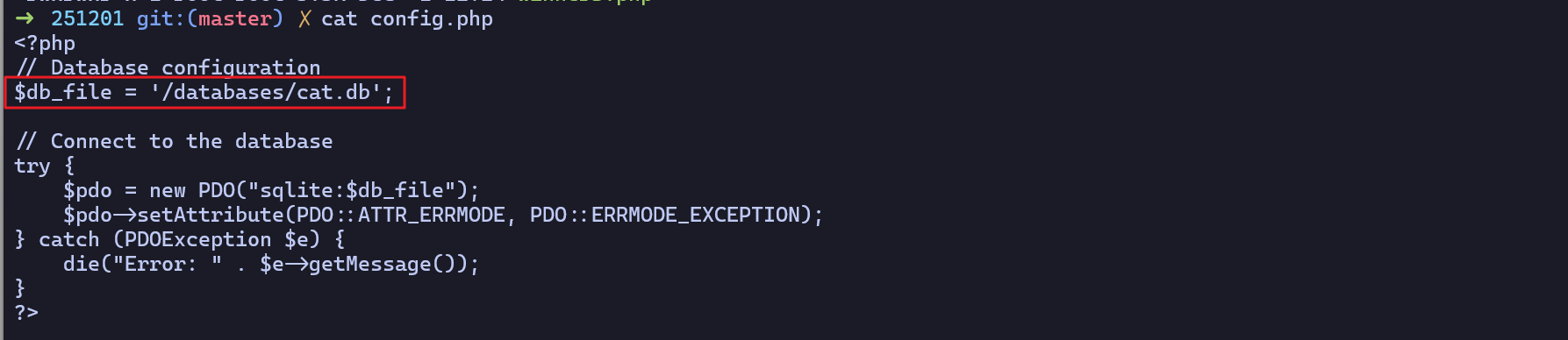 - 정보수집 과정에서 “/var/www/cat.db/config.php” 파일에 있는 DB 파일 경로를 확인했다.