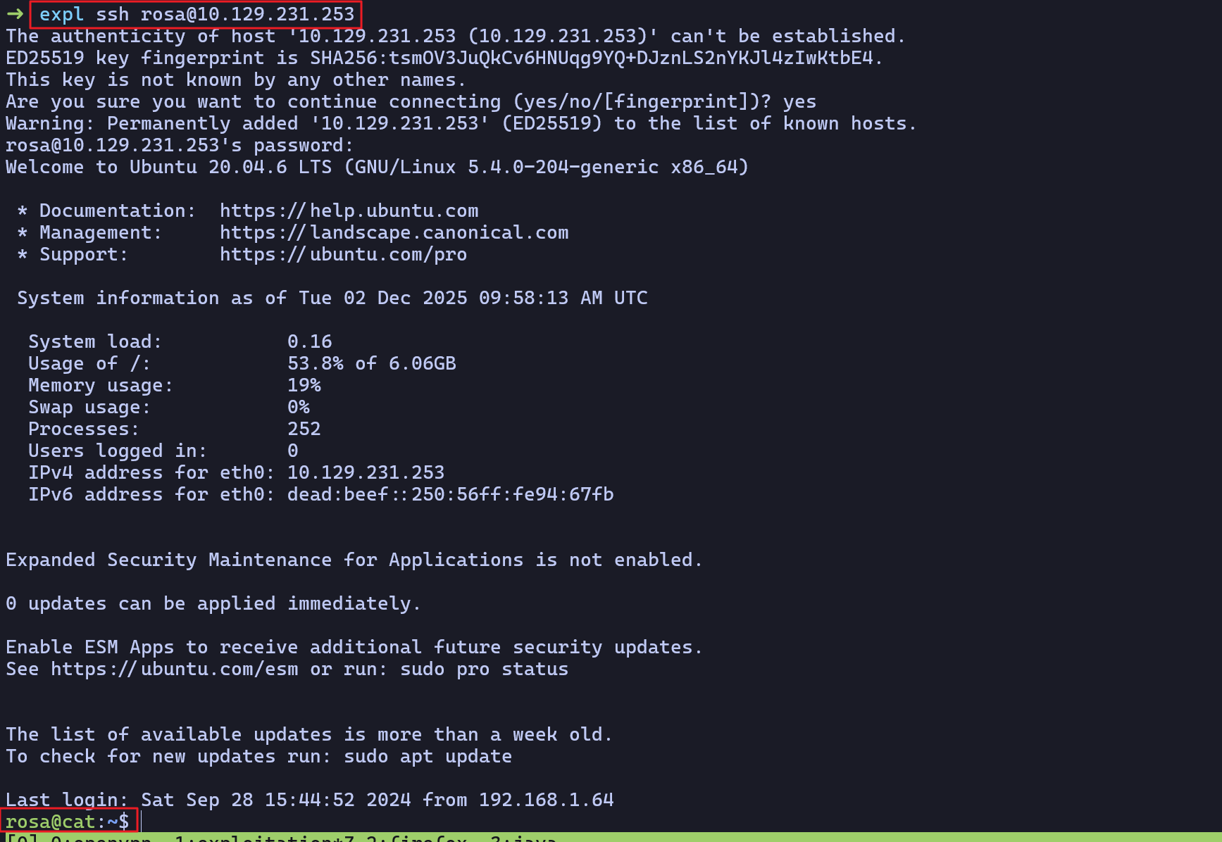 rosa계정으로 접속이 가능했다. (초기침투 성공)