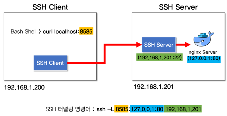 ssh -L [로컬에서 사용할 포트]:[최종적으로 접근할 곳] [SSH 서버 주소]