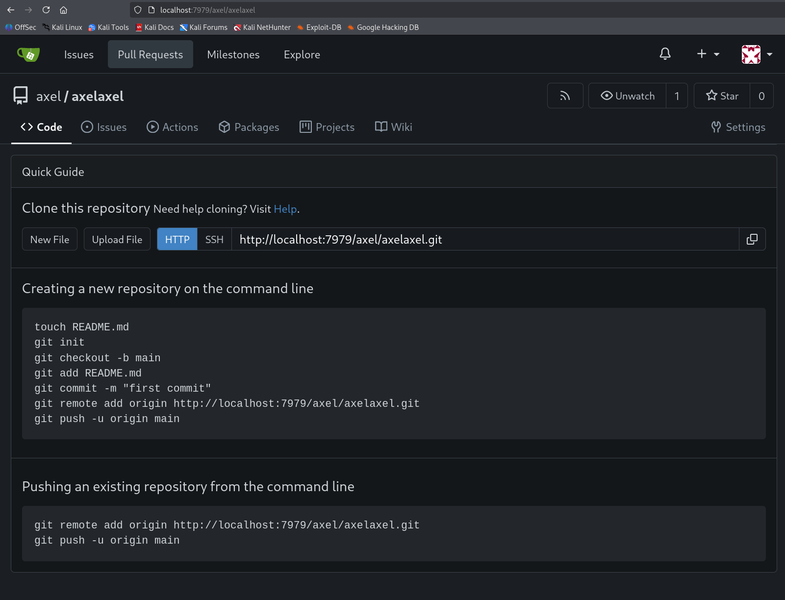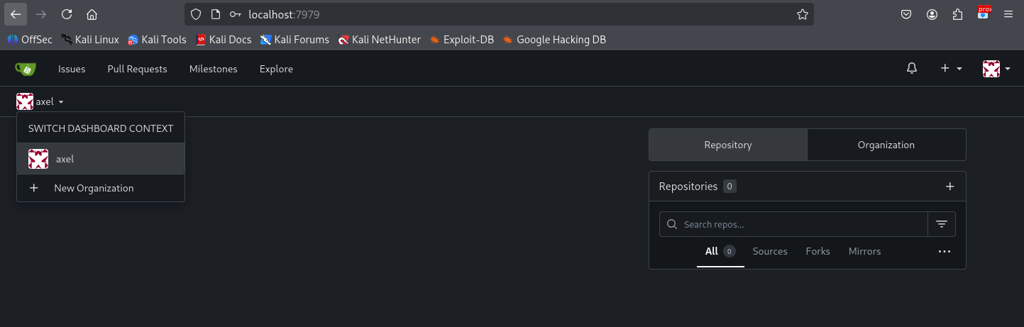 Gitea 1.22.0 - Stored XSS취약점 익스플로잇 상세 방법은 아래와 같았다.- (1) 애플리케이션 로그인 진행 (axel 계정으로 로그인 완료)