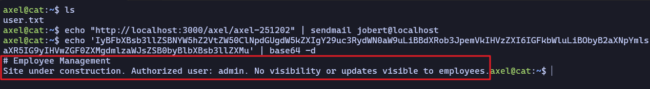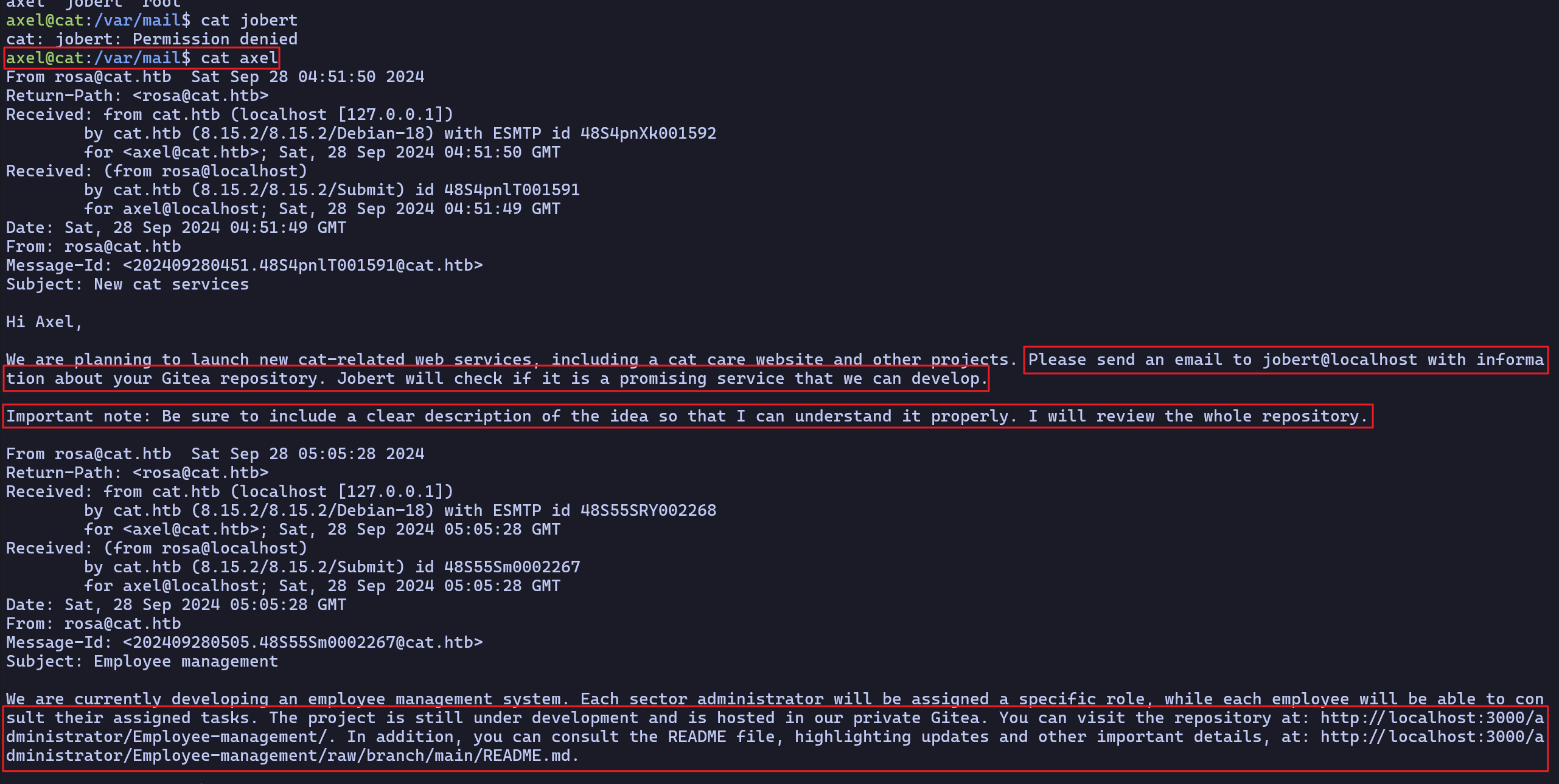 - 추가로, 정보수집 과정에서 /var/mail/axel 파일을 발견했다.
