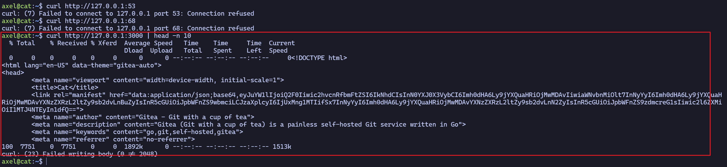 curl명령어를 통해 확인한 결과, 3000번 포트에서 웹 서비스가 운영되고 있었다.