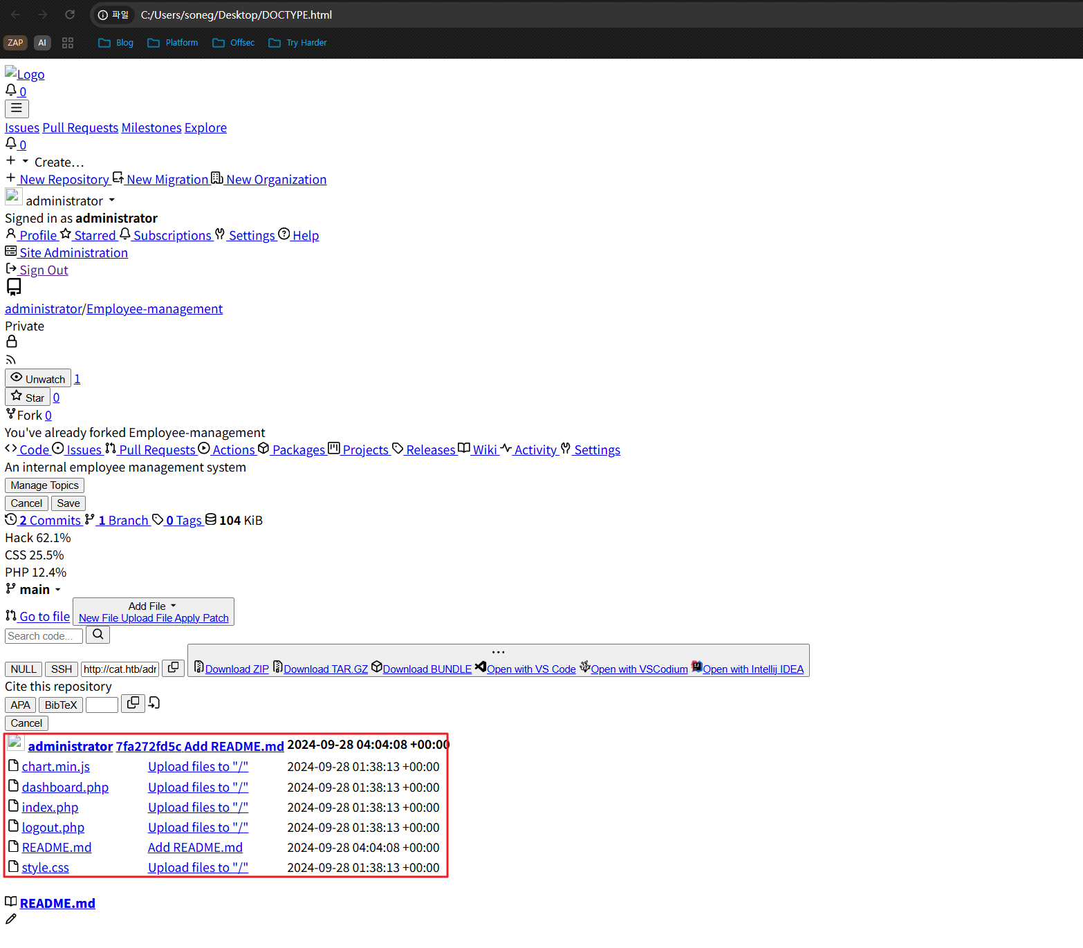 http://localhost:3000/administrator/Employee-management/raw/branch/main/README.md경로에는 업데이트 및 중요정보가 저장되어 있다고 했다. (이 중요정보가 어떤 정보인지 확인이 필요하다.)