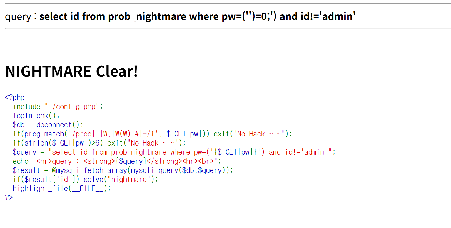 https://los.rubiya.kr/chall/nightmare_be1285a95aa20e8fa154cb977c37fee5.php?pw=%27)=0;%00