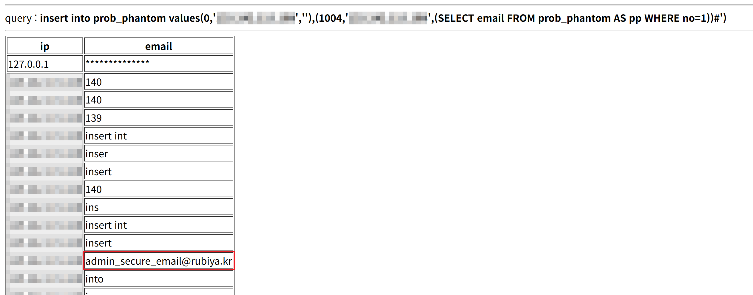 마지막 쿼리문을 살펴보면 $result['email'] === $_GET['email'] 값이 일치해야 문제 풀이를 성공할 수 있다.