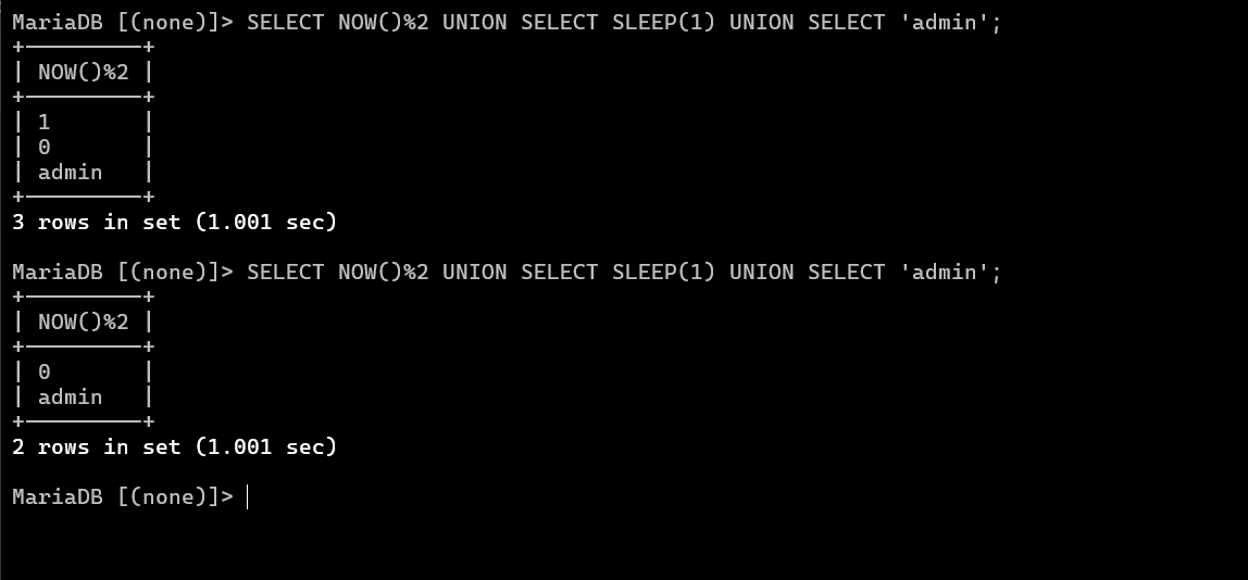 이러한 경우에는 시간 관련 함수인 SLEEP() 혹은 NOW() 함수를 사용해 볼 수 있다.