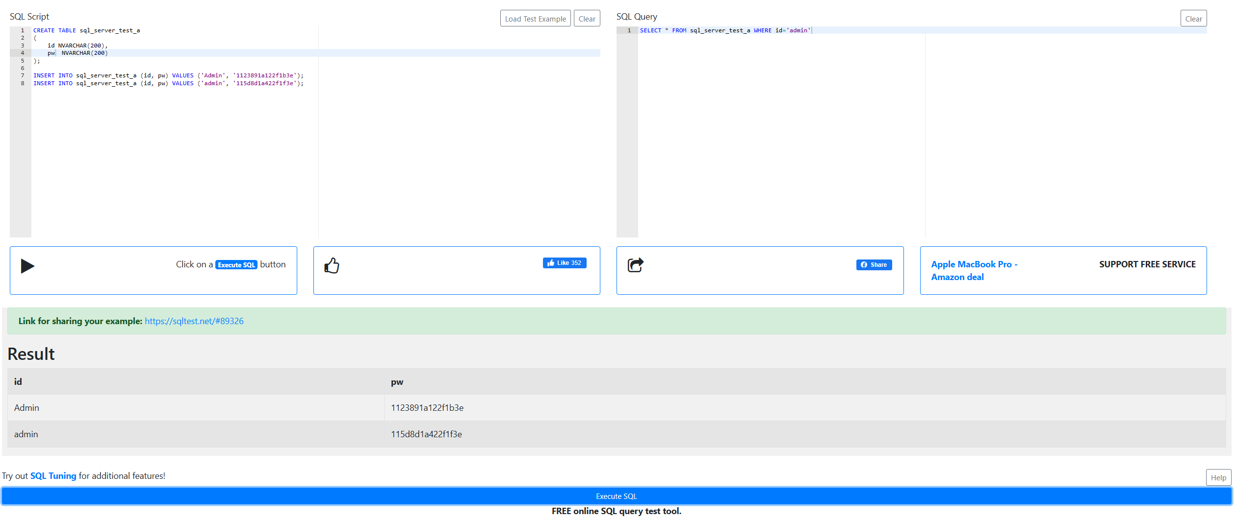 이 사이트(https://sqltest.net/)는 DBMS 별로 쿼리문을 테스트 할 수 있는 온라인 사이트다.