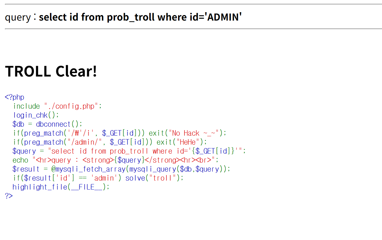 https://los.rubiya.kr/chall/troll_05b5eb65d94daf81c42dd44136cb0063.php?id=ADMIN