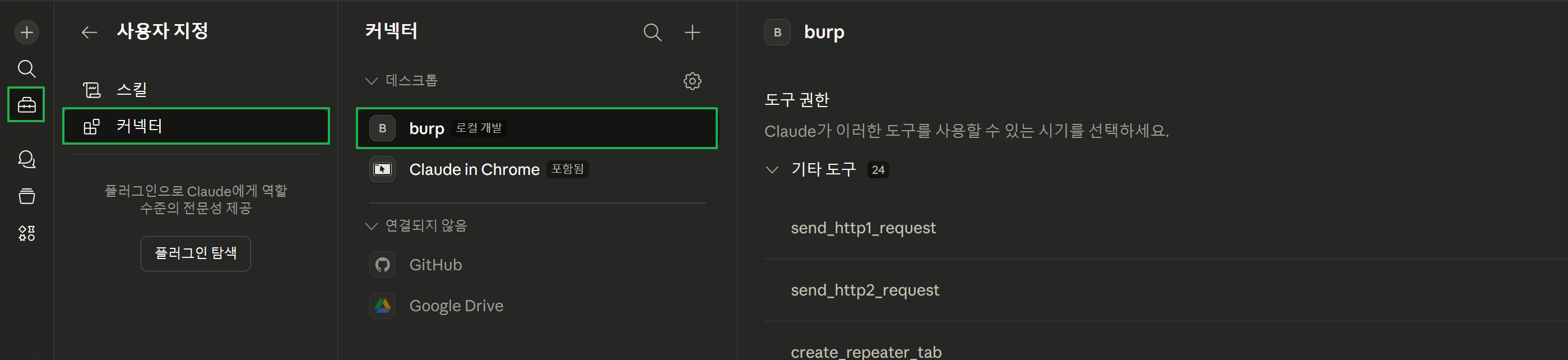 이제 클로드 데스크탑에서 사용자 지정 → 커넥터 경로로 접속하면 버프스위트 MCP가 생성된 것을 볼 수 있습니다.