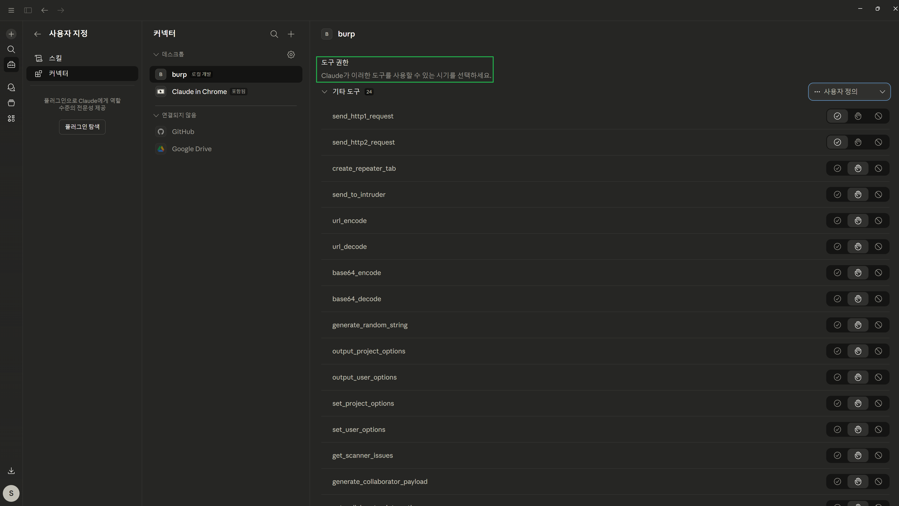 매 작업마다 접근 권한을 허용하는게 불편하다면 커넥터의 도구 권한 설정을 통해 이를 커스터마이징 할 수도 있습니다.